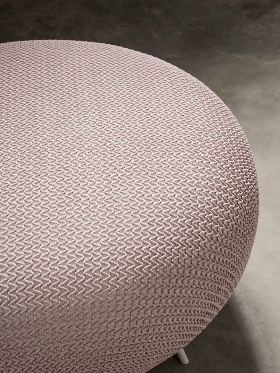 Gioia is a soft and generous ottoman, excellent for integrating the temporary presence of other guests in areas of conversation or rest, or to provide a supporting point. The structure is composed of tubular metal feet while the soft padding is covered with fire resistant and elastic handwoven mesh. A version with a zipped, removable cover is also available.