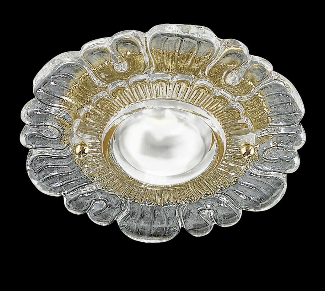 Spotlight in clear glass and metal with shiny gold finish. Available in different colours. Opera Classic Collection.