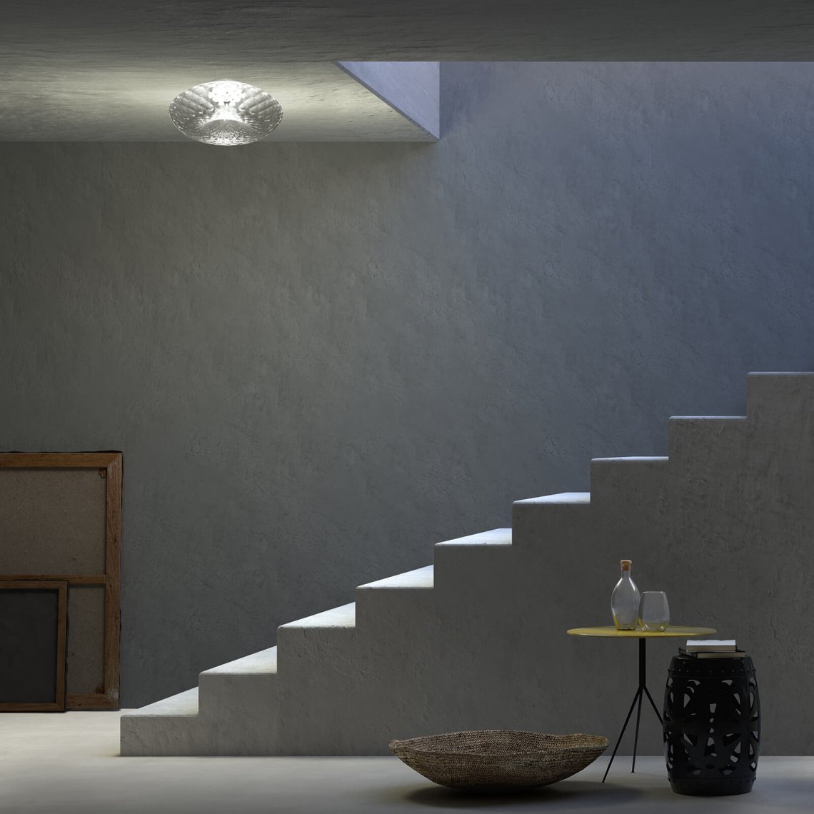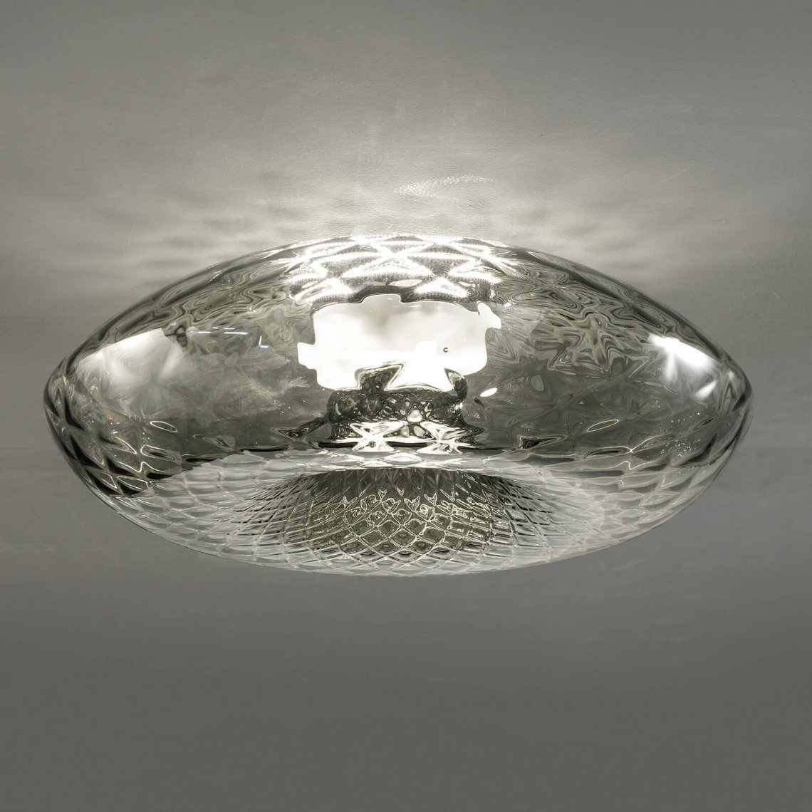 Ceiling lamp in transparent glass with chrome metal detail. Available in different dimension and colours. Incanto Modern Collection.