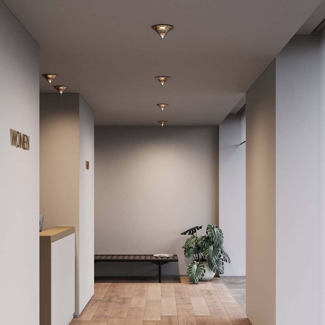 Spotlight with blown glass in gold, titanium or white shaded finish.