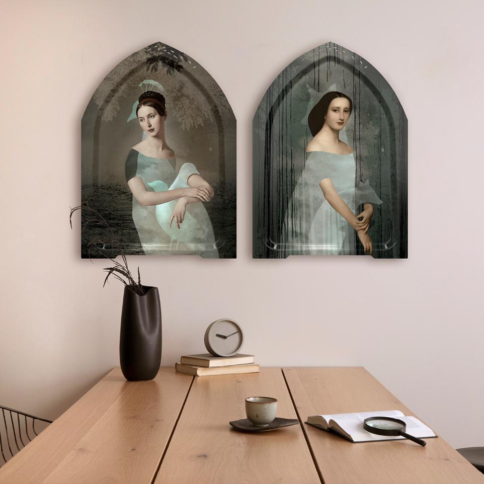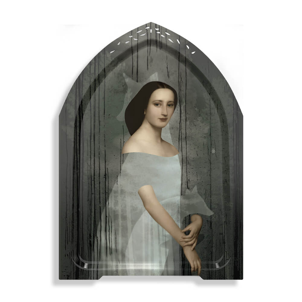 At the heart of Rachel Convers's latest pictorial creation for Ibride is a subtle interplay between human and animal, a disturbing fusion that reveals itself to those who look closely. At first glance, we are struck by the depiction of a woman tenderly embracing an animal, like a protective guardian. But beneath this initial flash of perception lies an astonishing graphic interplay.