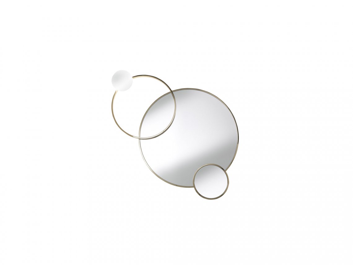 MIRROR WITH STRUCTURE IN BRASS. BEVELLED MIRRORS. SPHERE WITH INTERNAL LIGHT.