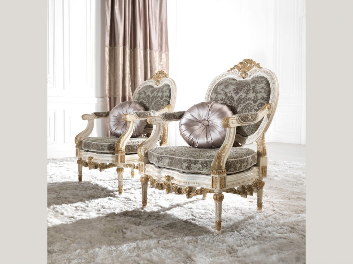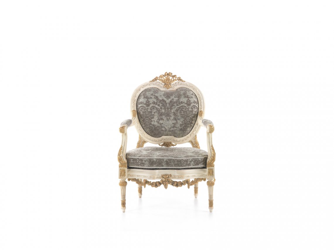 ARMCHAIR WITH STRUCTURE IN BEECHWOOD. PADDING IN FOAM. UPHOLSTERY IN FABRIC WITH DECORATIVE FRINGE.