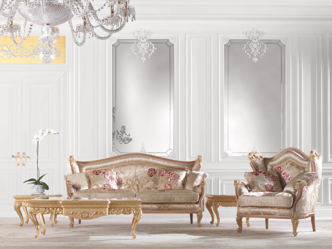 ARMCHAIR WITH STRUCTURE IN BEECHWOOD. PADDING IN FOAM. UPHOLSTERY IN FABRIC WITH DECORATIVE FRINGE.