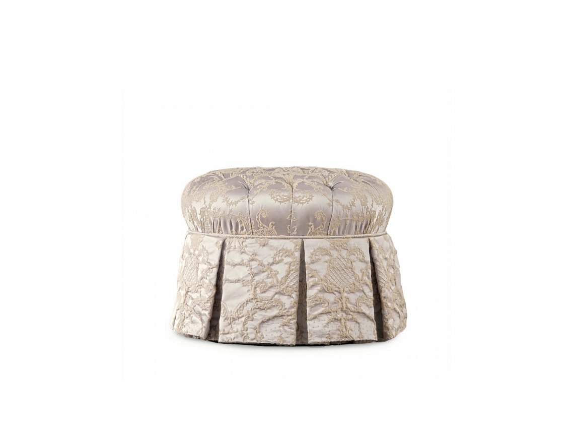 POUF WITH STRUCTURE IN POPLAR WOOD. PADDING IN FOAM. UPHOLSTERY IN FABRIC WITH CAPITONNé SEAT.