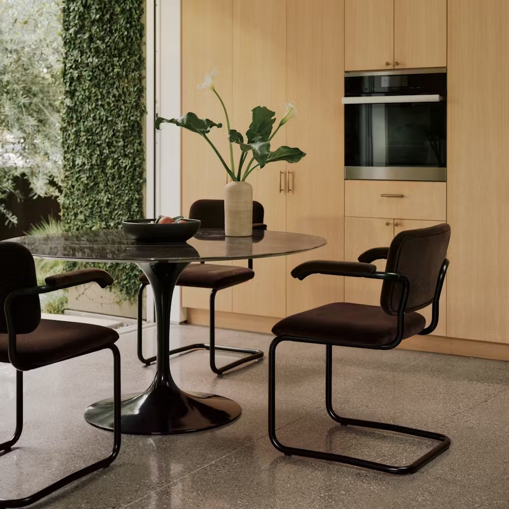 The Cesca Chair has a rare, almost innocuous, simplicity to its design—linearity balanced by subtle curves; a graphic juxtaposition of industrial and natural materials; and a cantilevered form that seems to float in thin air. In 1928 it was an international sensation. Nothing like it existed at the time, and its iconic form proves to be effortlessly contemporary as the decades roll by. Originally known as the B32, the chair was later renamed “the Cesca” after Marcel Breuer’s daughter, Francesca.