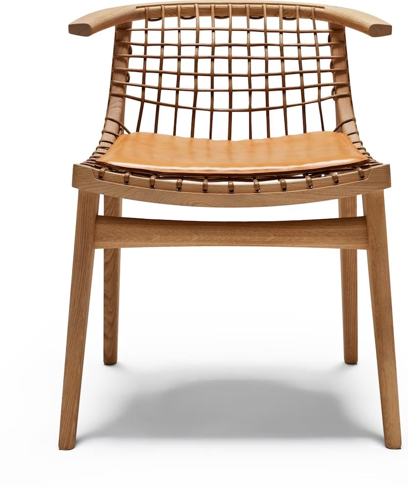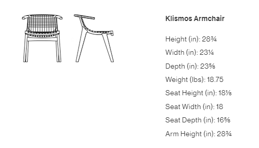 Expertly crafted from natural materials, the graceful form of the Klismos Dining Armchair welcomes the sitter with a scooped seat, precisely angled back, and wraparound armrests.