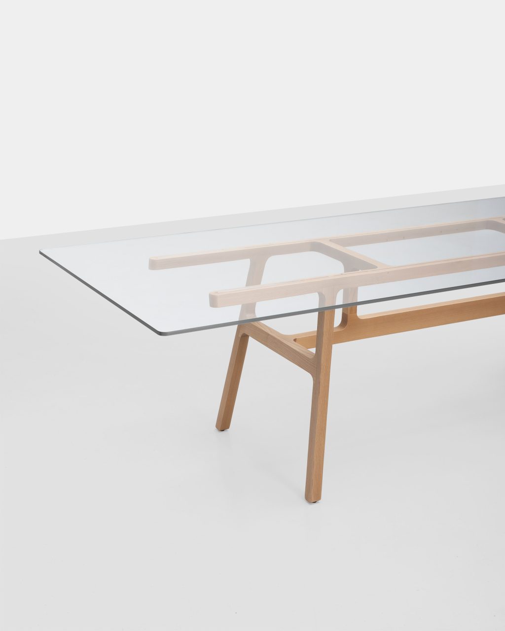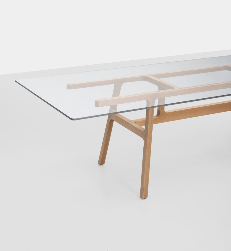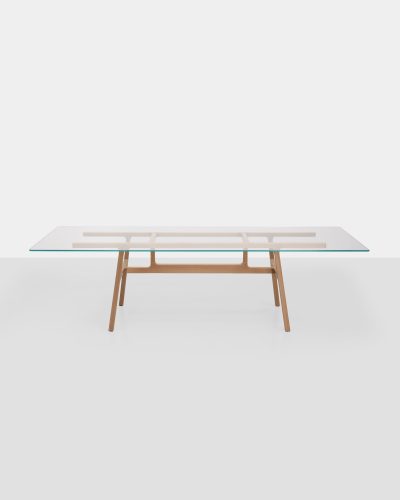 Bottega, the new table by the Japanese designer Kensaku Oshiro, is inspired by the aesthetics of utility that are typical of everyday work tools, such as the wooden easel in a craftsman’s workshop. Its beauty lies in its function, in the intrinsic nature of the table and its use over time. The elegant solid ash frame features surprising visual lightness.