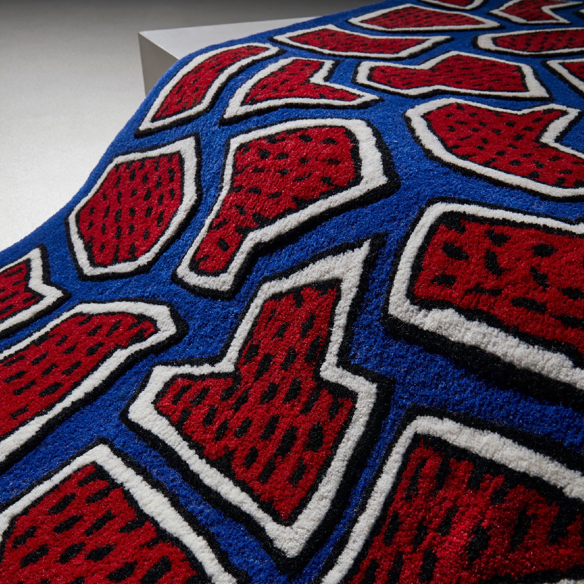 France is a hyper graphic rug, typical of Nathalie du Pasquier’s iconic designs from the Memphis movement of which she was the graphic designer in the 80’s.