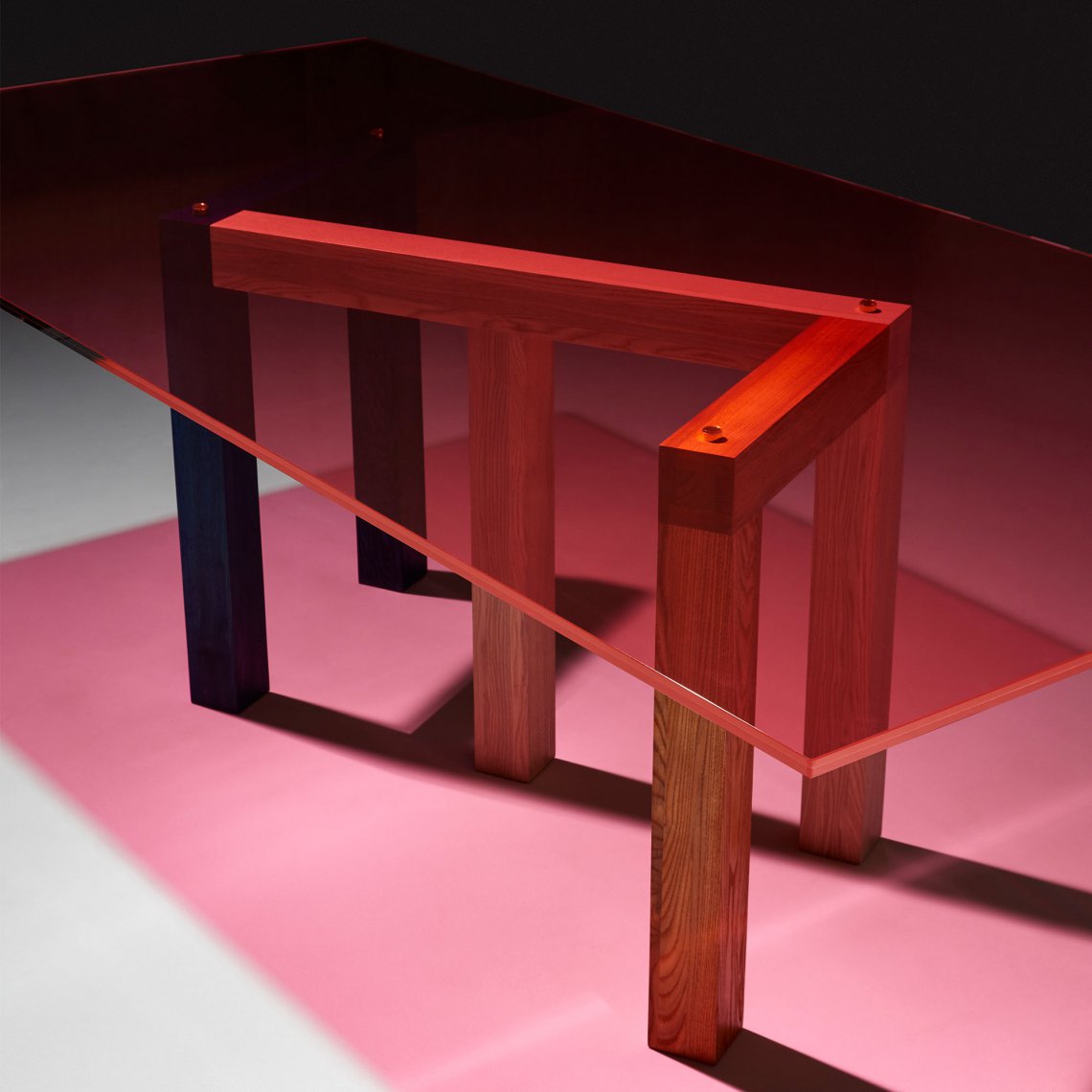 Penrose is a large dinner table in wood and glass. The design was inspired by the geometric research of mathematician Roger Penrose and his famous impossible triangle.
