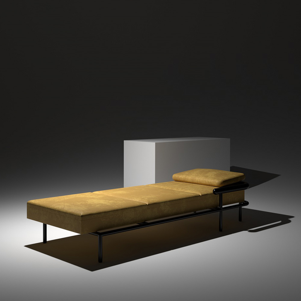 X-Ray is a daybed with a metal and wood showing structure. Instead of hiding the structures under fabric, Alain Gilles literally x-rayed the welcoming and comfortable traditional sofa construction to create a graphic and sculptural piece for the home and the office.