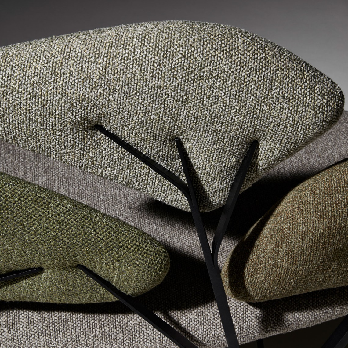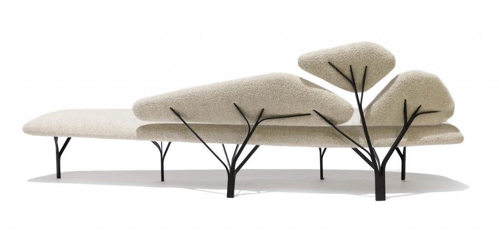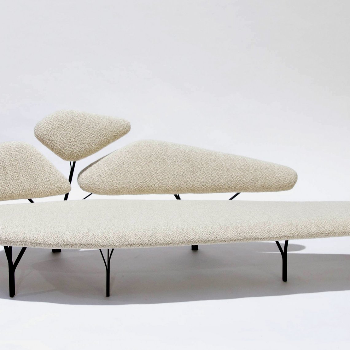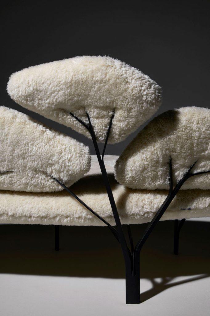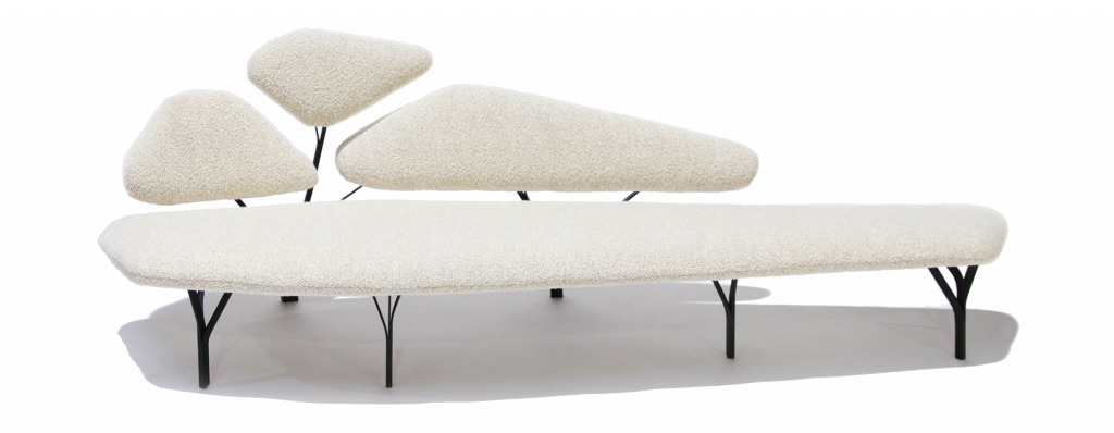 Borghese Sofa is a sculptural piece directly inspired and named after the pine trees of the Villa Borghese gardens in Roma. The designer’s preference for organic shapes readily translates as a standout modernist statement-piece.