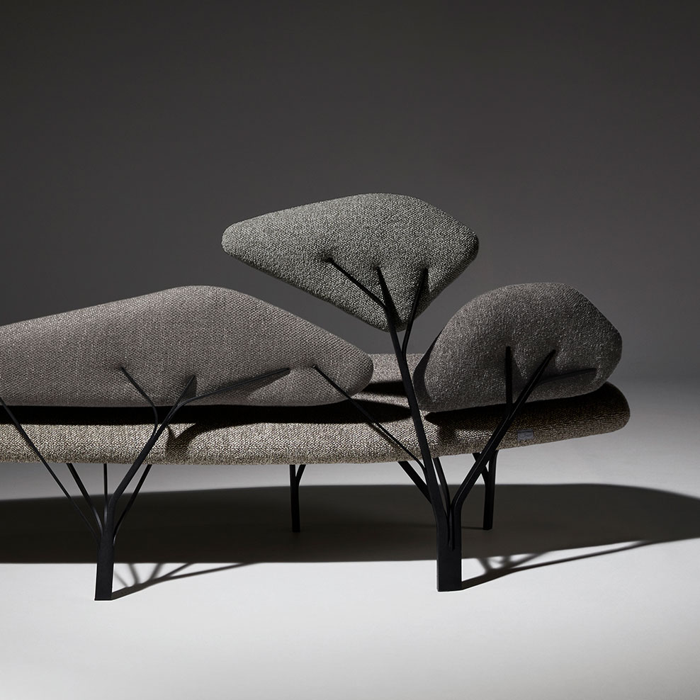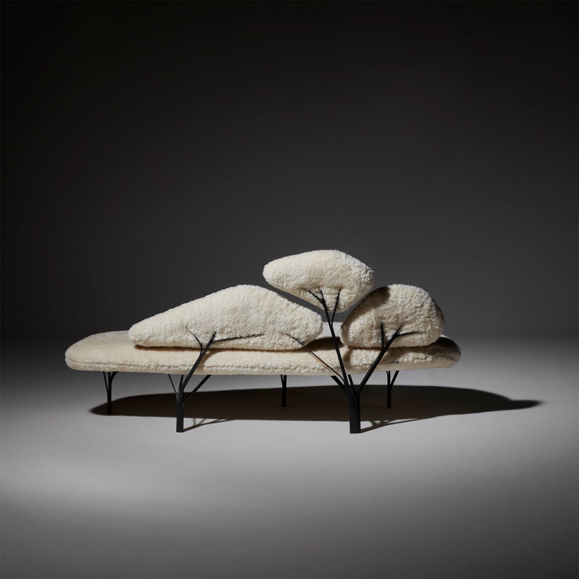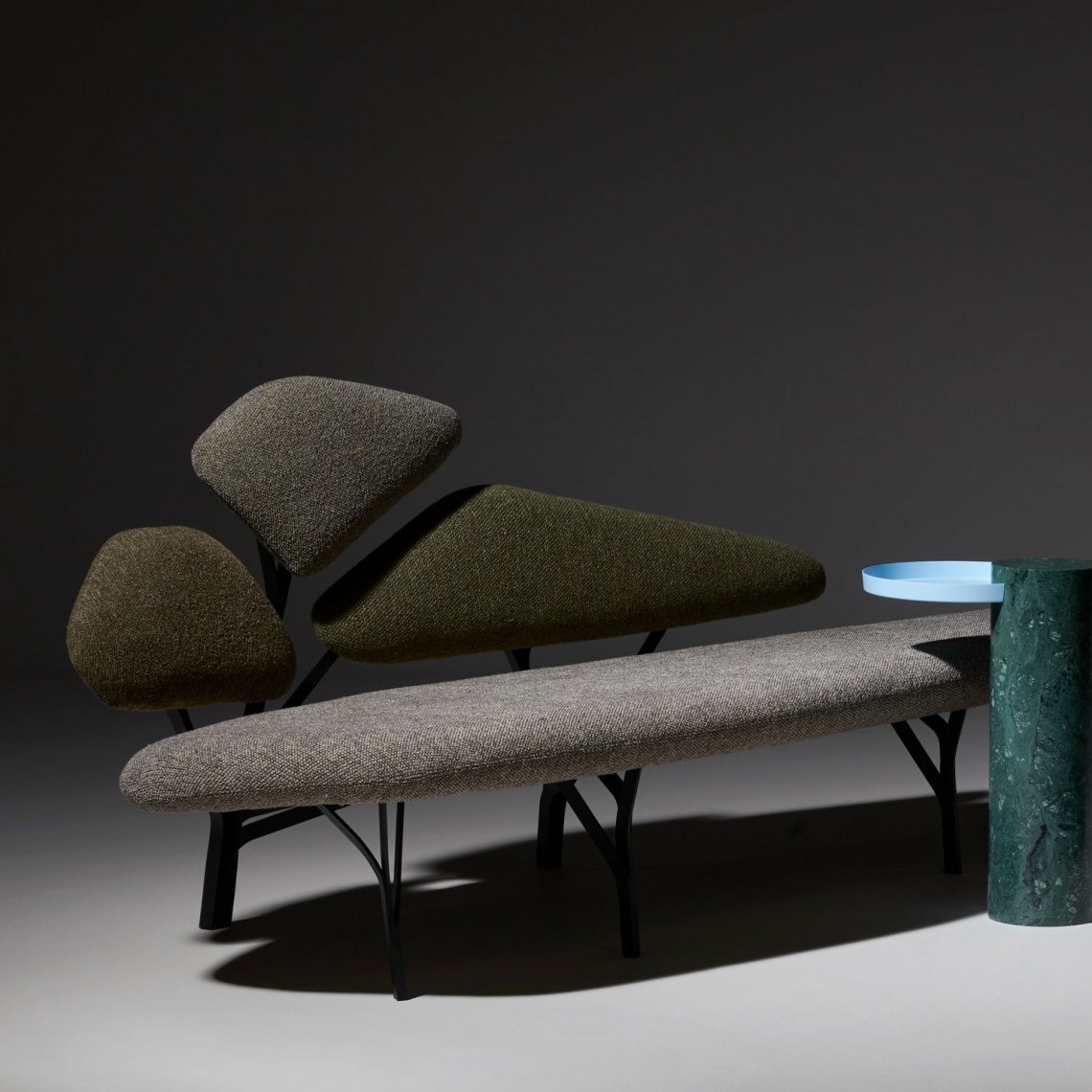 Borghese Sofa is a sculptural piece directly inspired and named after the pine trees of the Villa Borghese gardens in Roma. The designer’s preference for organic shapes readily translates as a standout modernist statement-piece.