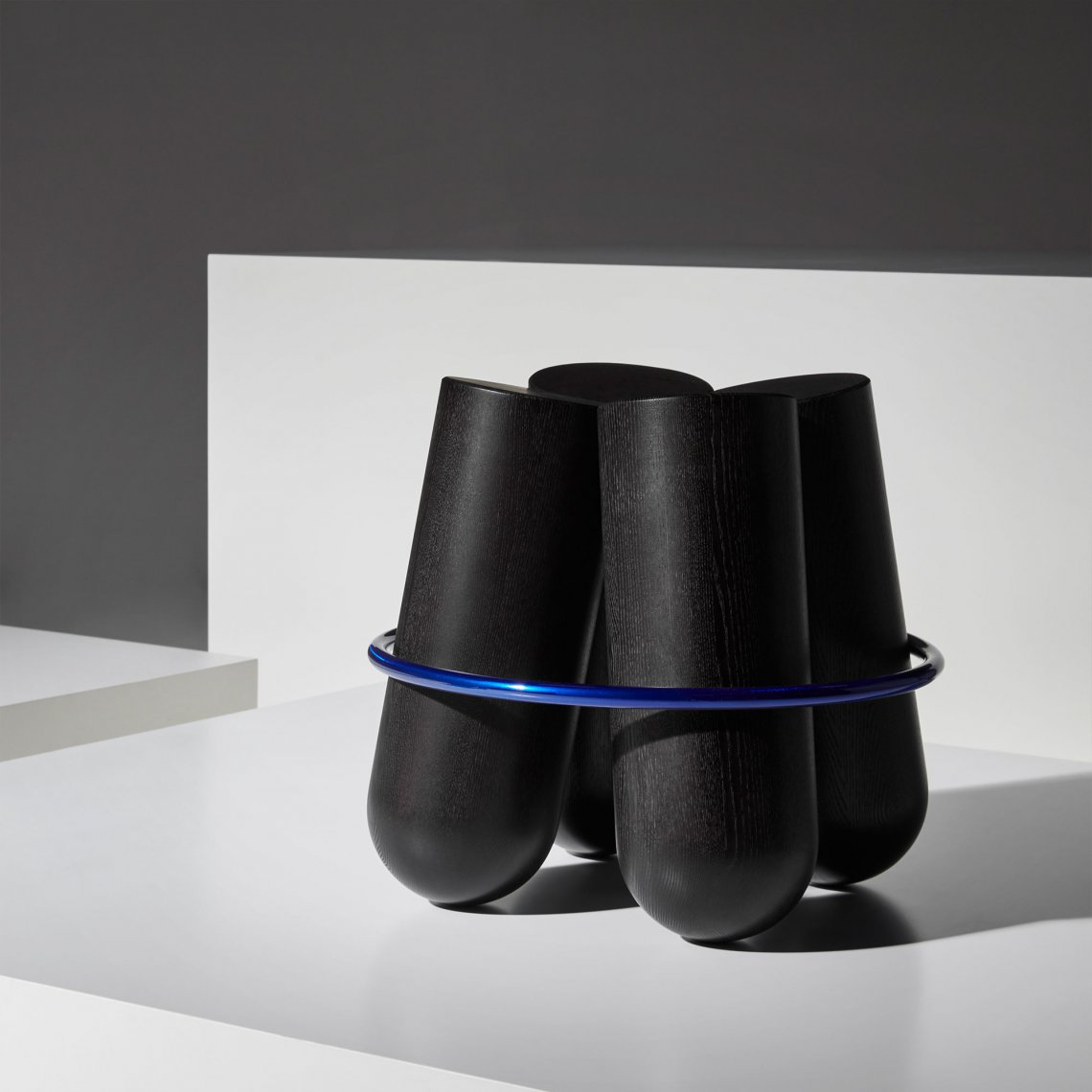 Bolt is maybe the most iconic stool of the collection. Its unique silhouette is highly recognizable with his 4 solid logs elegantly held by a contrasting metal ring. Bolt is a paradoxe: brutal and very refined at the same time. The stool is also surprisingly comfortable, it is a sculpture for daily use.