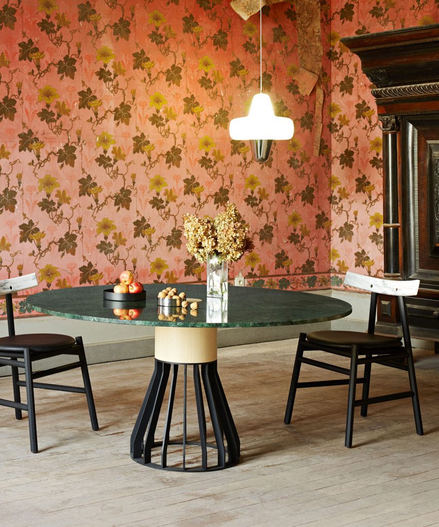 Swan is a large pendant lamp with smooth and curvy lines. Swan is made of an opalescent shade in blown glass floating above a chromed metal cone.