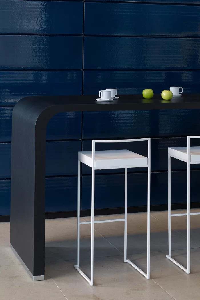 Perfetto per chi cerca linee geometriche essenziali, lo sgabello CUBO alto 65 cm, impilabile e grintoso, fa del suo scheletro in acciaio cromo satinato il suo punto di forza.