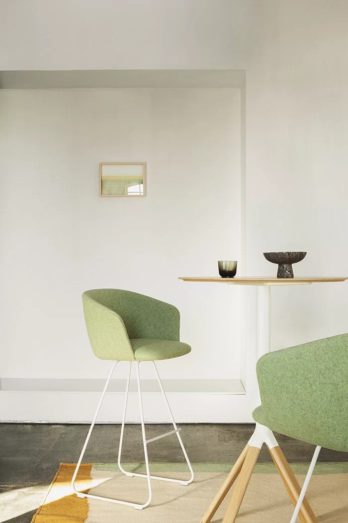 Uno sgabello imbottito che calza come un guanto. Avvolgente e armonico, GLOVE, lo sgabello disegnato da Francesco Rota, è caratterizzato da uno schienale alto, che sorregge e sostiene e da una comoda imbottitura che avvolge tutta la seduta. Nella versione a colonna regolabile in altezza è perfetto sia attorno a un bancone nell'ambito contract e hotellerie, che atttorno al bancone cucina di una casa moderna.