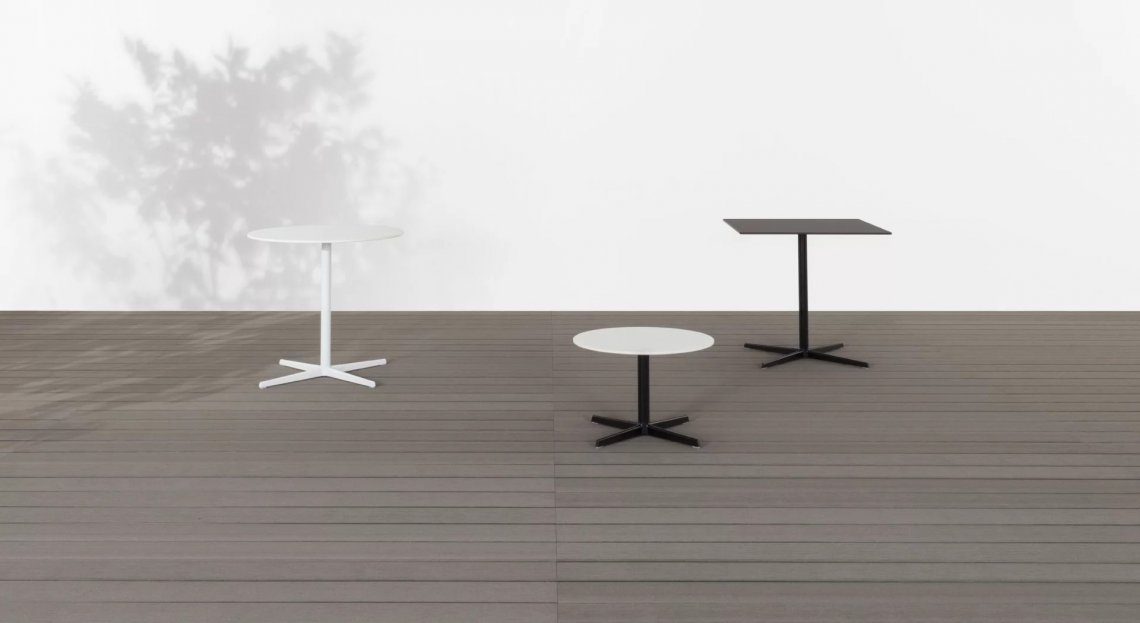 Geometrico e poetico. Nella semplicità delle forme, nell’eleganza delle proporzioni, AUKI riscrive la bellezza di una giornata outdoor. Un’unica linea, che dalla base a stella in alluminio sale alla colonna in acciaio inox su cui poggia il piano tondo o quadrato in laminato HPL, disponibile in due misure. E a quel punto, la giornata inizia a girare nel modo giusto.