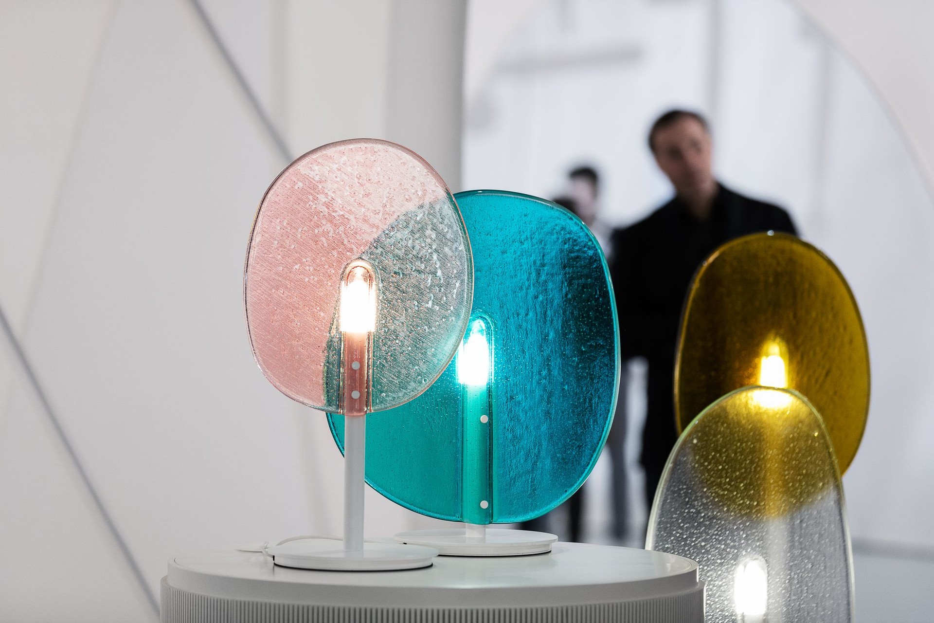 Boris Klimek experimented with the technique of slumped glass, exploring its wide possibilities in terms of glass coloring, glint and internal structure. Made of amorphous glass plates, combined with the metal holder and inserted light source, the resulting objects are reminiscent of lollipops. The Lollipop collection consists of table and stand-alone lamps, as well as pendant lights.