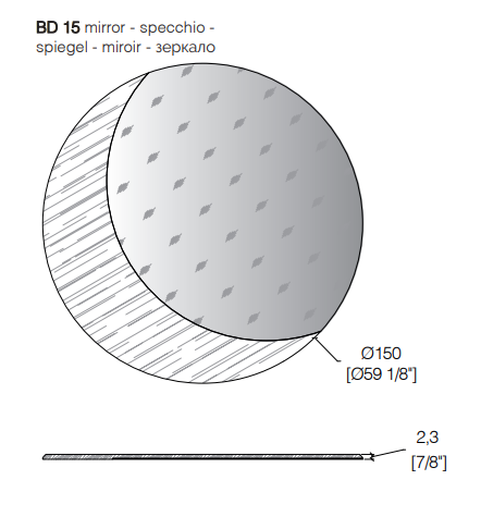 Round mirror with wooden frame and frontal panel decorated with Decor carving on the sight side. It is available in all woods of the collection, with a Liquid Metal finish and in special dimensions.