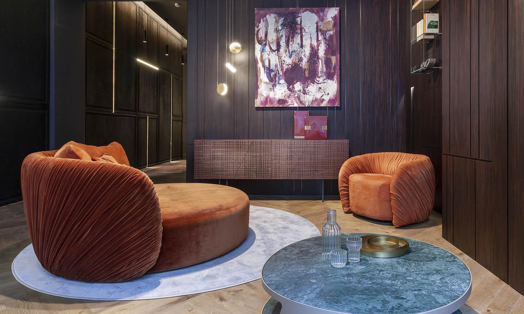 Drapé Round is a modern round sofa