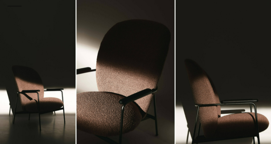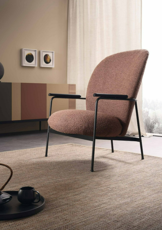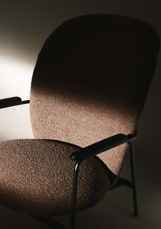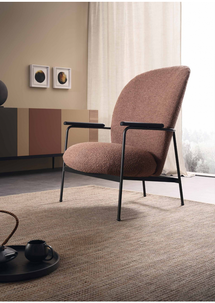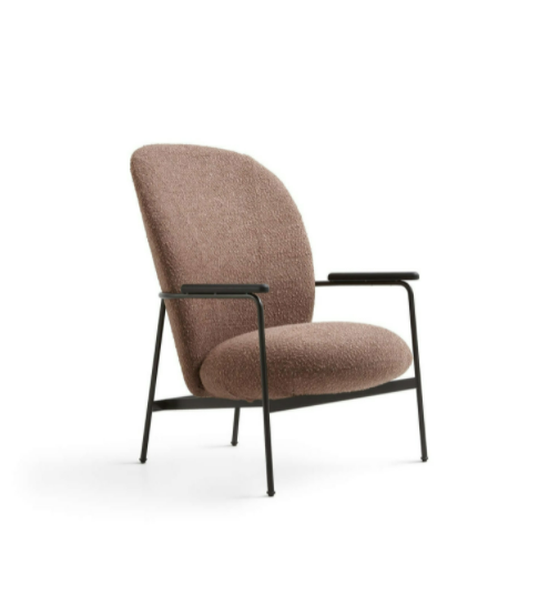 Featuring a high backrest and rounded shape, the Claire lounge chair invites you to sit comfortably, while enjoying a moment of relaxation. In contrast to the generous upholstery, the metal frame is minimalist, enhanced by solid wood armrests that give the entire armchair a reassuring tactility. Through these sophisticated details and careful experimentation with proportions and volumes, Norm Architects has sought to create a classic lounge for contemporary living.