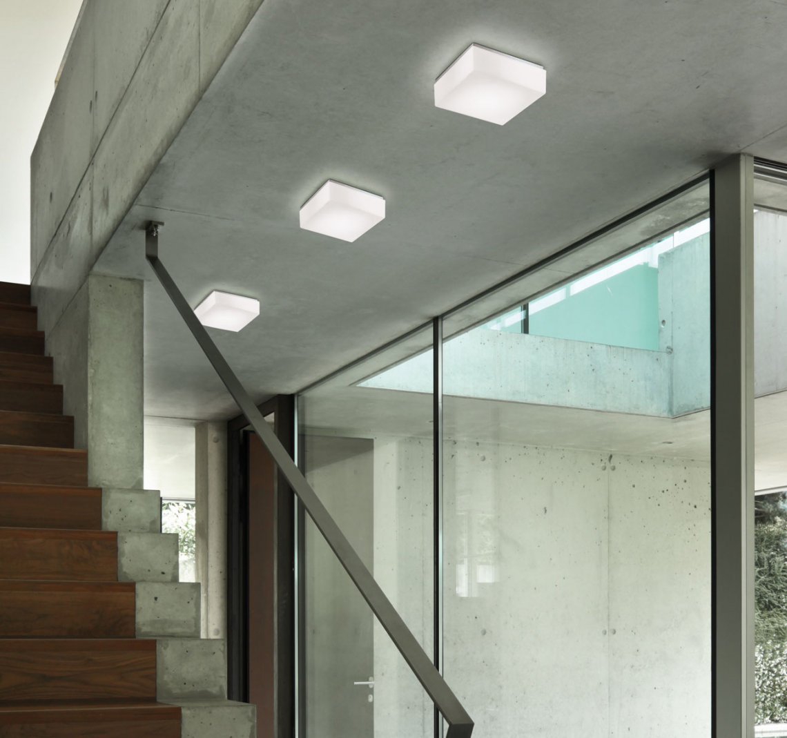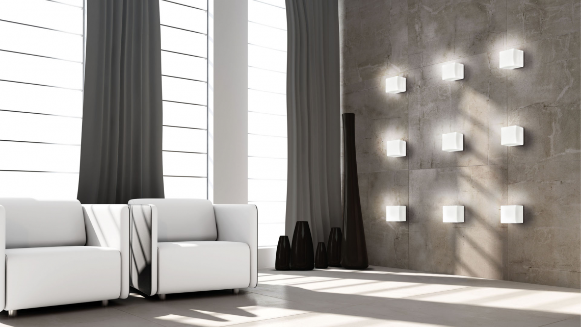 Cubi è una collezione di lampade da parete e soffitto disegnata da Leucos Design Lab. Il diffusore bianco satinato a forma di cubo è costituito da più strati di vetro soffiato a bocca, seguendo la tradizione veneziana della tecnica del vetro "incamiciato" nella quale un Maestro soffiatore utilizza più strati di vetro, ciascuno con traspareze e proprietà diverse, per creare una ricca finitura che fornisce un'ottima luce diffusa. Le lampade da soffitto e parete Cubi sono disponibili in 3 dimensioni (11, 16 e 28 cm) e 2 colori di finitura della struttura (grigio artico o ottone spazzolato). Divertente e decorativo il suo utilizzo in multipli.