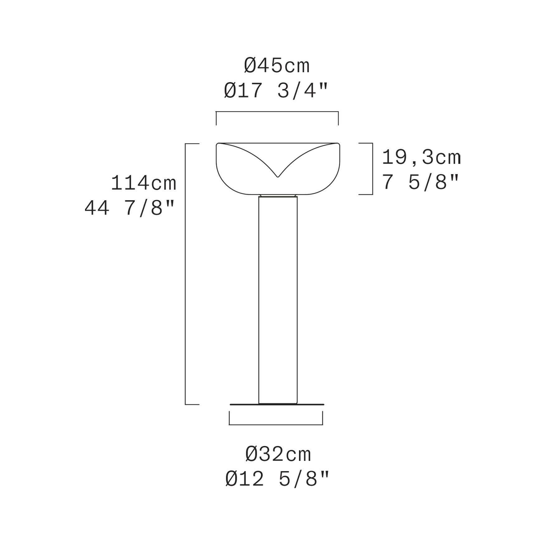 La lampada da terra AELLA TR 45 rappresenta l'ultima incarnazione dell'iconica collezione AELLA, frutto delle menti creative dei designer Renato Toso e Noti Massari nel 1968. Con un corpo in alluminio estruso nero opaco più lungo rispetto alla versione da tavolo ( ?32 cm – H 94,7 cm ), questa lampada si distingue per la sua imponenza, conferendo una presenza ancora più maestosa e stabile. Il diffusore in vetro soffiato ( ?45 ), disponibile in tre colorazioni – borgogna sfumato, fumé o trasparente con macchia bianca - si integra armoniosamente con la base in nero opaco offrendo un'estetica unica e personalizzata per ogni ambiente.