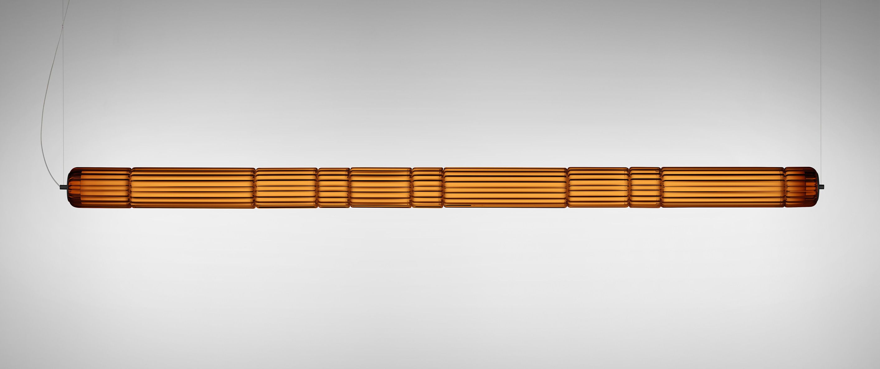 Progettata da Rockwell Group, la Collezione Stacking unisce tecnologia all'avanguardia e tecniche tradizionali di lavorazione del vetro. Comprende tre serie di lampade da terra e una serie di lampade a sospensione orizzontali e verticali. La versione da terra è stata disegnata nel 2007 e rende omaggio alla ricca tradizione vetraria veneziana che utilizza la tecnica chiamata “incamiciato”: abili maestri vetrai sovrappongono vetri con proprietà distinte, creando un affascinante mosaico di colori e opacità dando vita a inaspettate sinergie di luce. Questa tecnica ad alta intensità di lavoro crea diversi colori e opacità in ciascun modulo di vetro. Quando questi moduli cilindrici si accostano e si sovrappongono, un accattivante mix di colori proietta una sofisticata luce su tutto l'ambiente circostante.