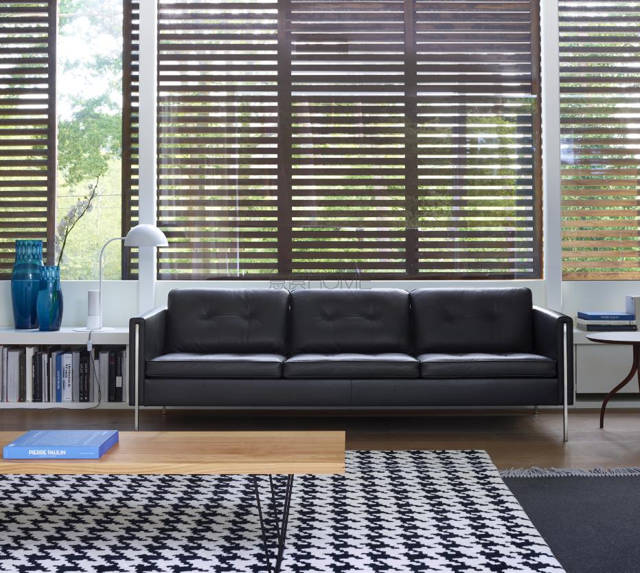 Andy seems set to be a great classic, bearing as it does the imprint of Pierre Paulin. In 1962, reinterpreting Florence Knoll's settee from 1954, he softened all its contours, reducing the number of buttons to eliminate the severe squares of quilting and made the metal structure underlining the edges of its base disappear, retaining only the four legs : in short, he designed a new domestic settee, both sensual and refined. And as a precious refinement, he mounted the chromed steel legs inside the armrests both to the front and to the rear, a touch which was just as elegant when viewed from the front as from the rear: inserting the leg into the armrest necessitated more meticulous stitching and upholstery for a perfect finish.