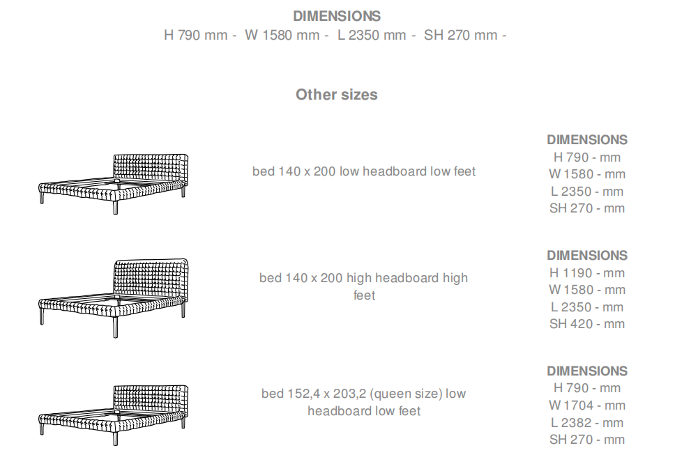 As with the Ruché settee, the Ruché bed is lifted from the ground by a simple, fine structure which supports a comfortable sleep platform. The headboard and frame are dressed with a distinctive quilting, a kind of boutis stitch of padding made using a cross-hatching of interrupted seams. Alternately flattened by the stitches then set free, the fabric 'curls' in places, giving rise both to its unique appearance and to its name, Ruché (a gathered or pleated fabric which serves as decoration on a piece of clothing). For Ligne Roset, Ruché also brings together the unusual and the traditional. The unusual thing about this piece is its solid wood structure, and the great traditional element: the quilting, the very heart of its savoir-faire. Its rangy uprights and the undulations of its duvet combine to produce a harmonious union of rigorous straight lines and soft, welcoming curves.