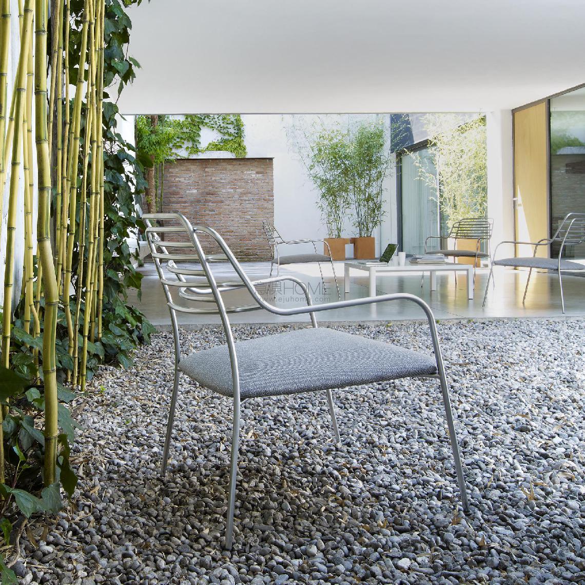 Philippe Nigro's Résille collection of seating has an ambivalent vocation: its inventive style enables it to equip, first and foremost the living room; however, as an option, a range of specially selected materials enables it to take the air out of doors as well. Since the outdoor sphere is now giving ground to comfort and design, an 'outdoor' version gives everybody the chance to place their furniture exactly where they wish.