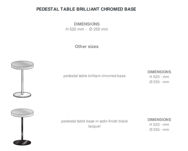Structure in brilliant-chromed steel; top made from a log of solid walnut with visible knots and cracks. The diameter of the top varies between 25 cm and 30 cm. Each pedestal table is unique.