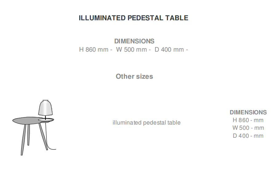 Illuminated pedestal table with top in sawn- effect natural oak veneer. Reading light with copper-plated shade mounted on a copper- plated metal stem. A decorative copper disc is set flush into the top directly beneath the shade. Beige textile cable. Integral switch on fitting. Supplied with 1 x 12 W LED bulb. Colour temperature 2,700 K (warm white). THIS LIGHT CONTAINS INTEGRAL LED LIGHTS OF ENERGY CLASS A+.