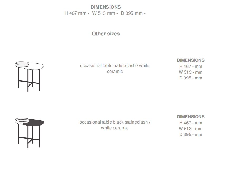 邊桌:(L)51.3 x(l)38.5 x(h)46.7厘米 黑槐木/白陶瓷 白蠟?zāi)?白陶瓷