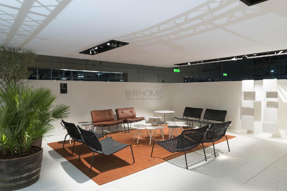 Armchair and chaise longue available for indoor and outdoor. Padded armchair Indoor: supporting frame in steel with chromed-plated finish or epoxy powder coating gunmetal color, burnish color, RAL-K7 9010 white or 9017 black and, on request, AISI 316 stainless steel with matt satin-finish. Metal chassis embedded in coldexpanded polyurethane foam with covering in 100% polyether thermally bonded onto a polyamide velveteen backing. Back and seat cushion with performed polyurethane foam structure, covered with acrylic fibre layers. Quilted fabric or leather upholstery. The fabric version only is fully removable by zippers and Velcro fastenings after unscrewing the chassis from the supporting frame. Outdoor: supporting frame in Stainless Steel AISI 316 with matt satin finish or Stainless Steel 316 with epoxy polyester powder coating gunmetal color, burnish color, RAL-K7 9010 white or RAL-K7 9017 black. Backrest and Seat metal chassis embedded in cold- expanded polyurethane foam covered with “IDROSPALM”, a heat- sealed waterproof fabric protection. Back and seat padding with preformed open-cell structure polyurethane foam DRYFEEL S and fibre for outdoor, coated with heat- sealed waterproof fabric protection. Upholstery, with outdoor fabrics only, always quilted and fully removable by zippers and Velcro fastenings after unscrewing the chassis from the supporting frame. Woven armchair and chaise longue. Indoor: supporting frame in AISI 316 stainless steel with matt satin-finish, steel with chromed-plated finish or epoxy powder coating gunmetal color, burnish color, RAL-K7 9010 white and RAL –K7 9017 black. Woven with hide, hempen rope, leather Scooby (braided leather trim), PVC profile or in cellulose cord in the colours available in the collection. Supporting cushions in polyurethane foam covered with acrylic fibre layers and fabric or leather upholstery. Outdoor: supporting frame in AISI 316 stainless steel with matt satin-finish or epoxy powder coating gunmetal color, burnish color, RAL-K7 9010 white and RAL-K7 9017 black. Woven with PVC profile, in the colours available in the collection. Supporting cushions in open-cell structure polyurethane foam for outdoor, coated with fiber for outdoor. Upholstery with outdoor fabrics only. Cushions’ upholstery, in both versions, fully removable by zippers. Seat depth 51-60cm. The supporting frame of armchair Frog in stainless Steel AISI 316, has undergone and passed the corrosion test (UNI ISO 9227:93) with issue of relative certificate by CATAS?.