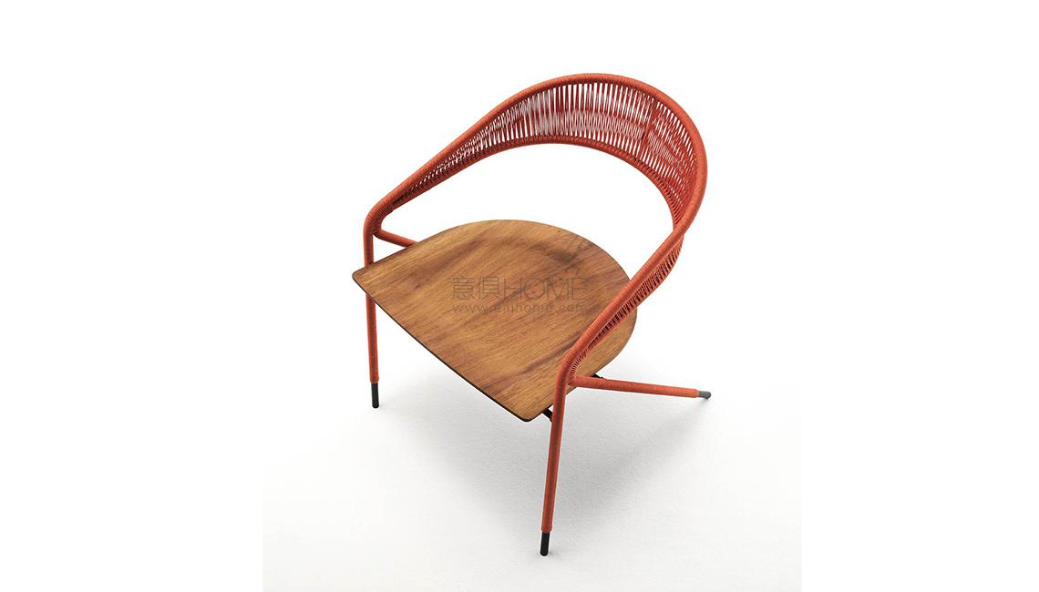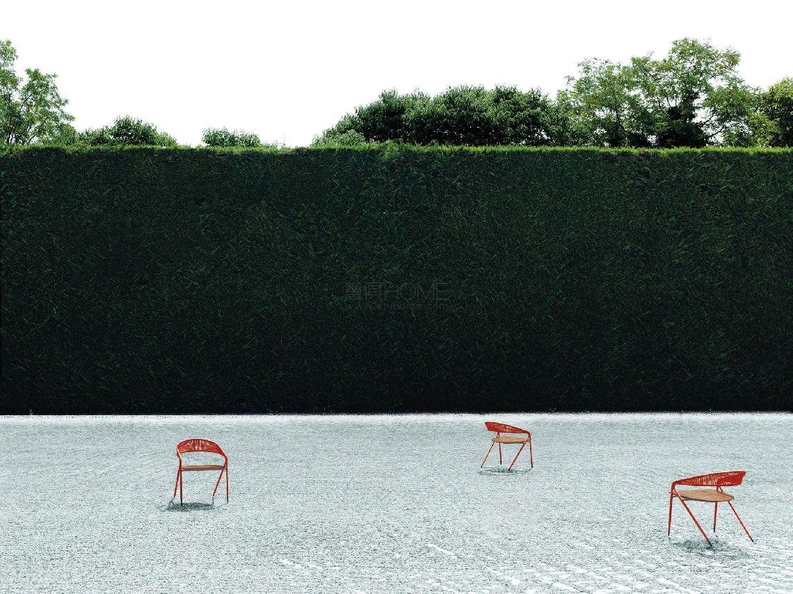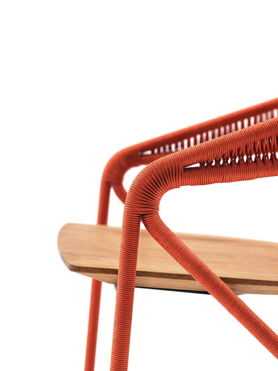 Dining chair available for indoor and outdoor in both Light version (only frame) and woven in the finishing available in our collection. Indoor: supporting frame in tubular and steel rod section ?16mm coated with epoxy powder finish RAL-K7 9017 matt black. Weave in natural wicker (? 3 mm) toasted and finished with a transparent varnish, profile in hide (? 2,5 mm) or waxed rope (? 2 mm). Seat, made of 5 slats glued together, in natural or charcoal- dyed solid ash wood with water-based acrylic paint finish. Outdoor: supporting frame in tubular and steel rod section ?16mm coated with a galvanizing base for outdoor and epoxy polyester powder finish RAL-K7 9017 matt black. Weave in waxed rope (? 2 mm) and seat, made of 5 slats glued together, in solid Iroko wood. Floor support secured by plastic feet.