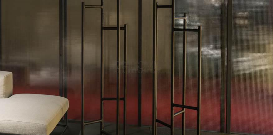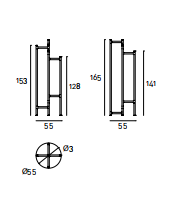 Coat- hanger composed by four “C-shaped” elements, of various heights, joined together by means of a central pin that, thanks to a “compass” opening, allows to place each element in various positions; the minimum recommended opening angle between elements is 90°. The structure, realized by a CNC machine, is in solid ash wood, ?30 mm, with acrylic painting finish; natural colour with acrylic water based finish, or charcoal dyed with acrylic base and acrylic painting finish. The spacer rings, ? 30mm, placed between each element, are in black phosphate coated steel. Floor support secured by plastic feet.