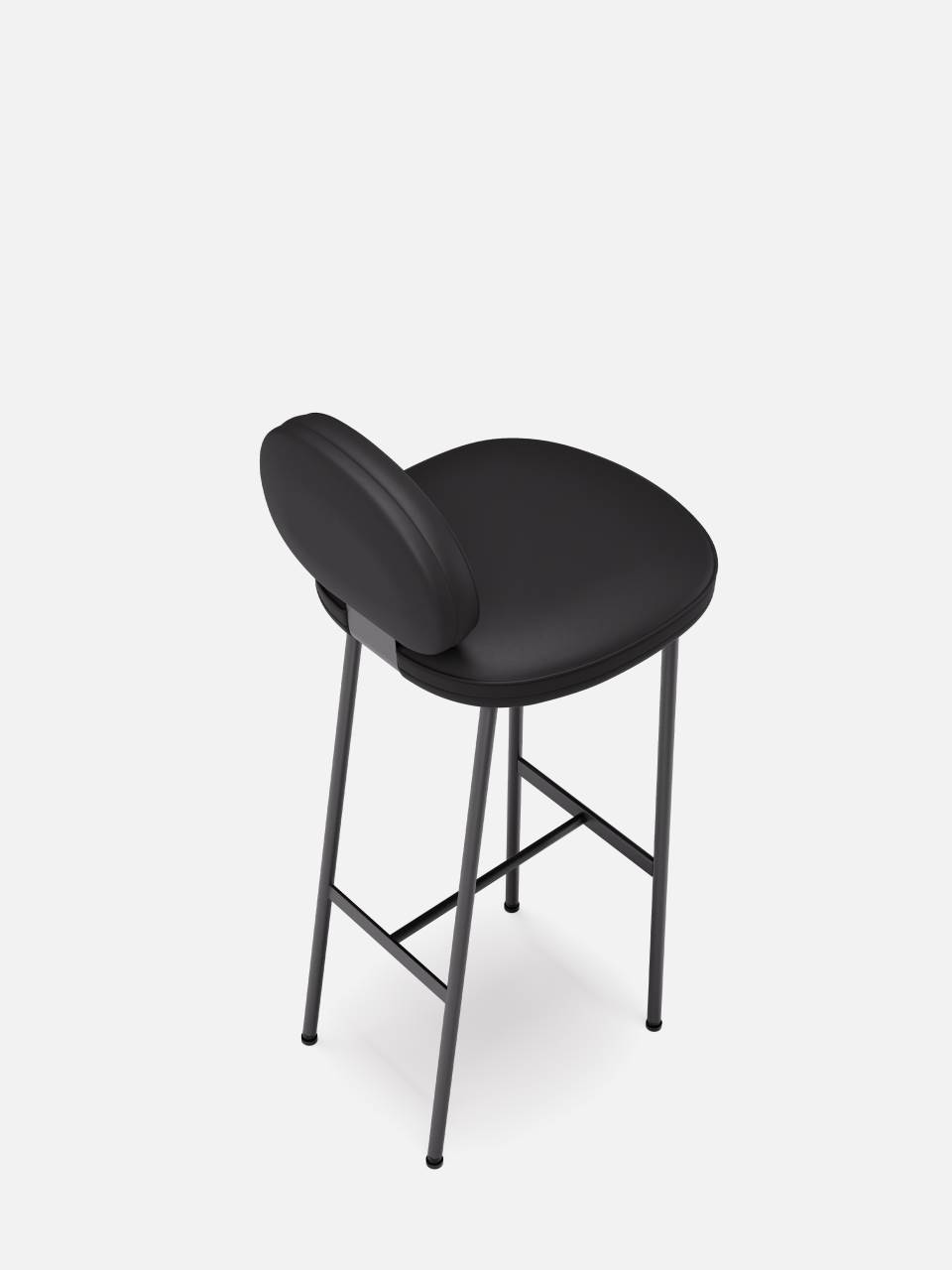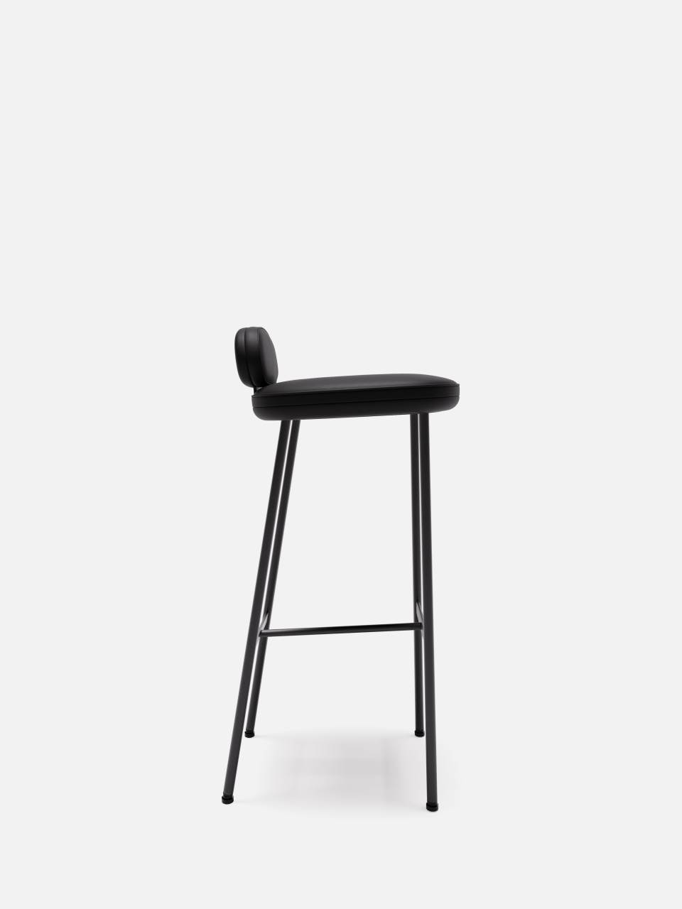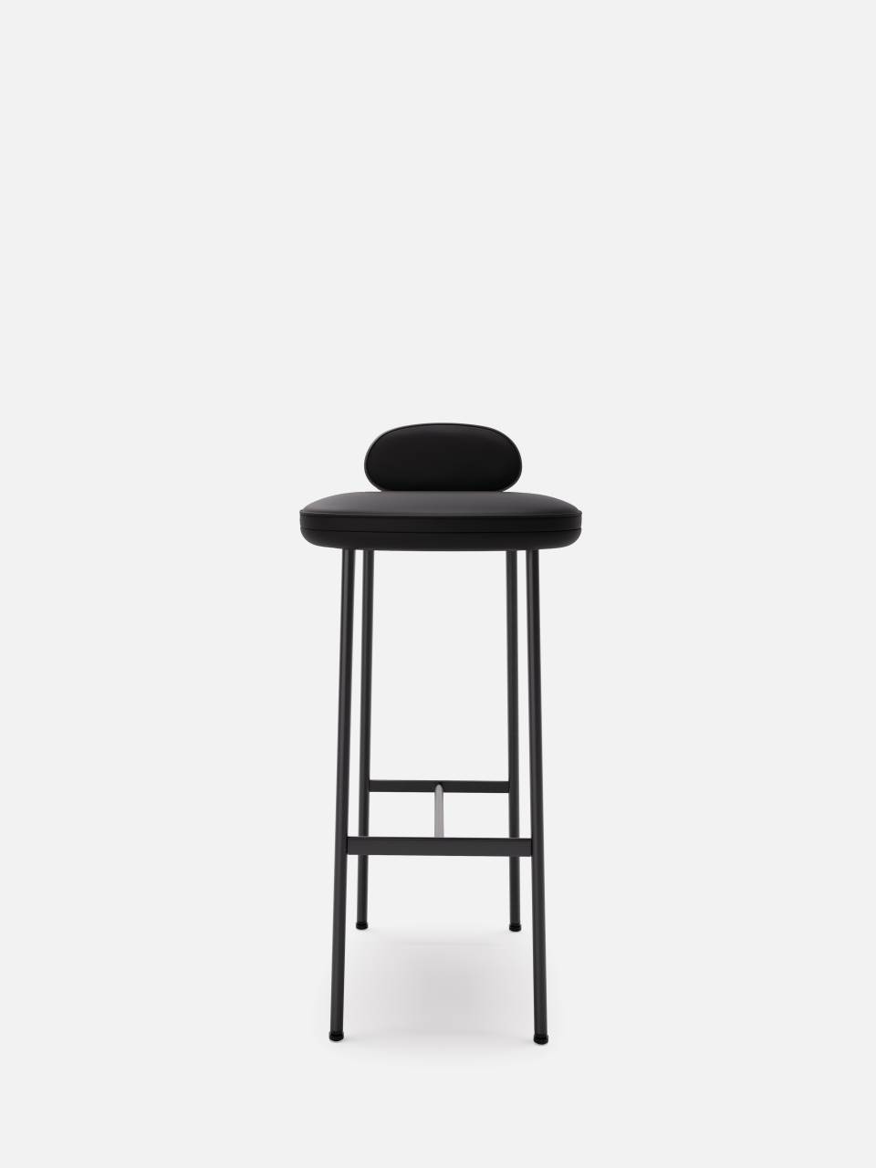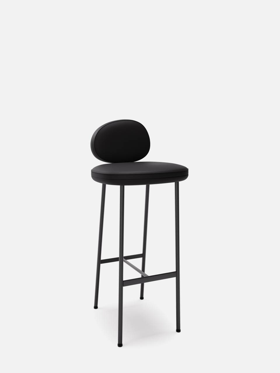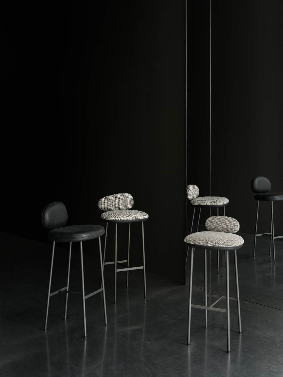 Stools characterized by slender legs, tapered as rushes, soaring to support organic silhouettes reminiscent of lake pebble-stones. Three different shapes for the backrests, so that each pebble stands out on its own.