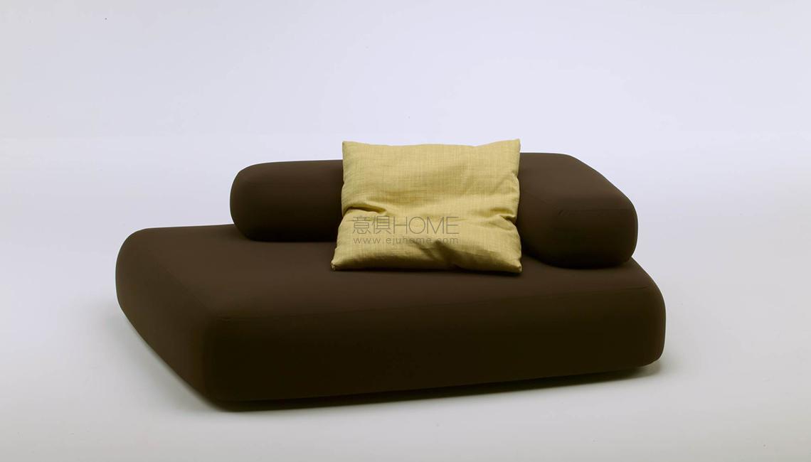 Elements with different shapes and sizes, available for indoor and outdoor. Indoor: one-piece frame in double-panelled poplar and pine. Sprung base with cross-woven coated rubber elastic straps. Padding in differentiated density polyurethane foam. Covering in needle punched, resinated, non-woven polyester fibre, bonded onto a polyamide velveteen backing. Fabric or leather upholstery. Outdoor: one-piece frame in marine plywood. Sprung base with cross-woven coated rubber elastic straps. Padding with open cell structure polyurethane foam FILTREN?T, covered with fibre for outdoor and a waterproof fabric. Upholstery with outdoor fabrics only. Both versions with black adjustable PVC feet and fabric upholstery only fully removable by zippers and Velcro fastenings.