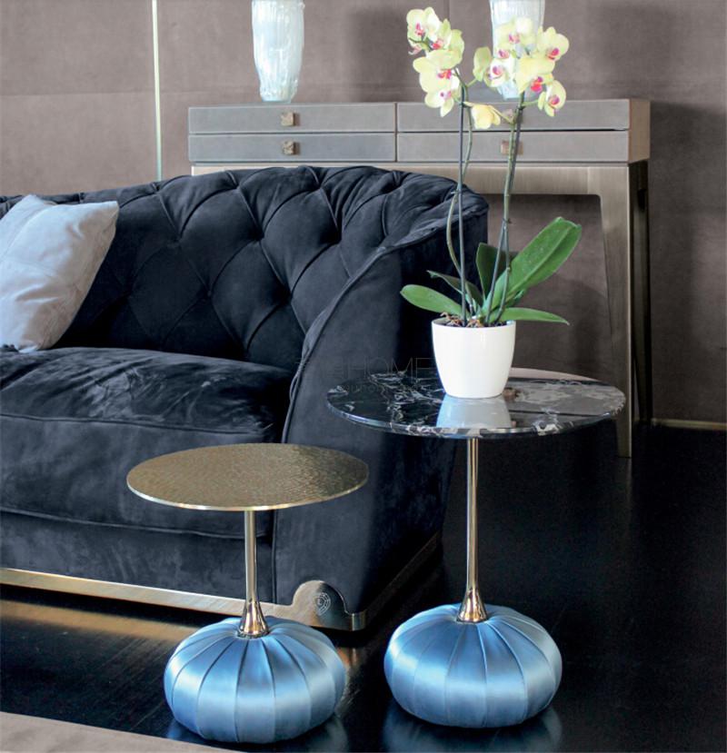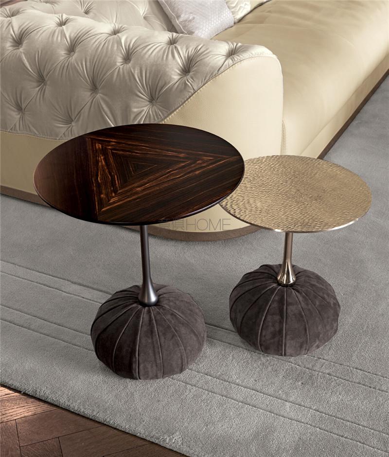 一系列展現(xiàn)講究簡約特色的圓桌,采用的精選材料使所有品項(xiàng)皆散發(fā)精致且樸實(shí)優(yōu)雅的氣質(zhì)。具備單柱金屬車削結(jié)構(gòu),圓球形底座外覆釘扣裝飾或放射打褶造型的皮料。大理石、黃銅或木材桌面,猶如漂浮在空間中。
