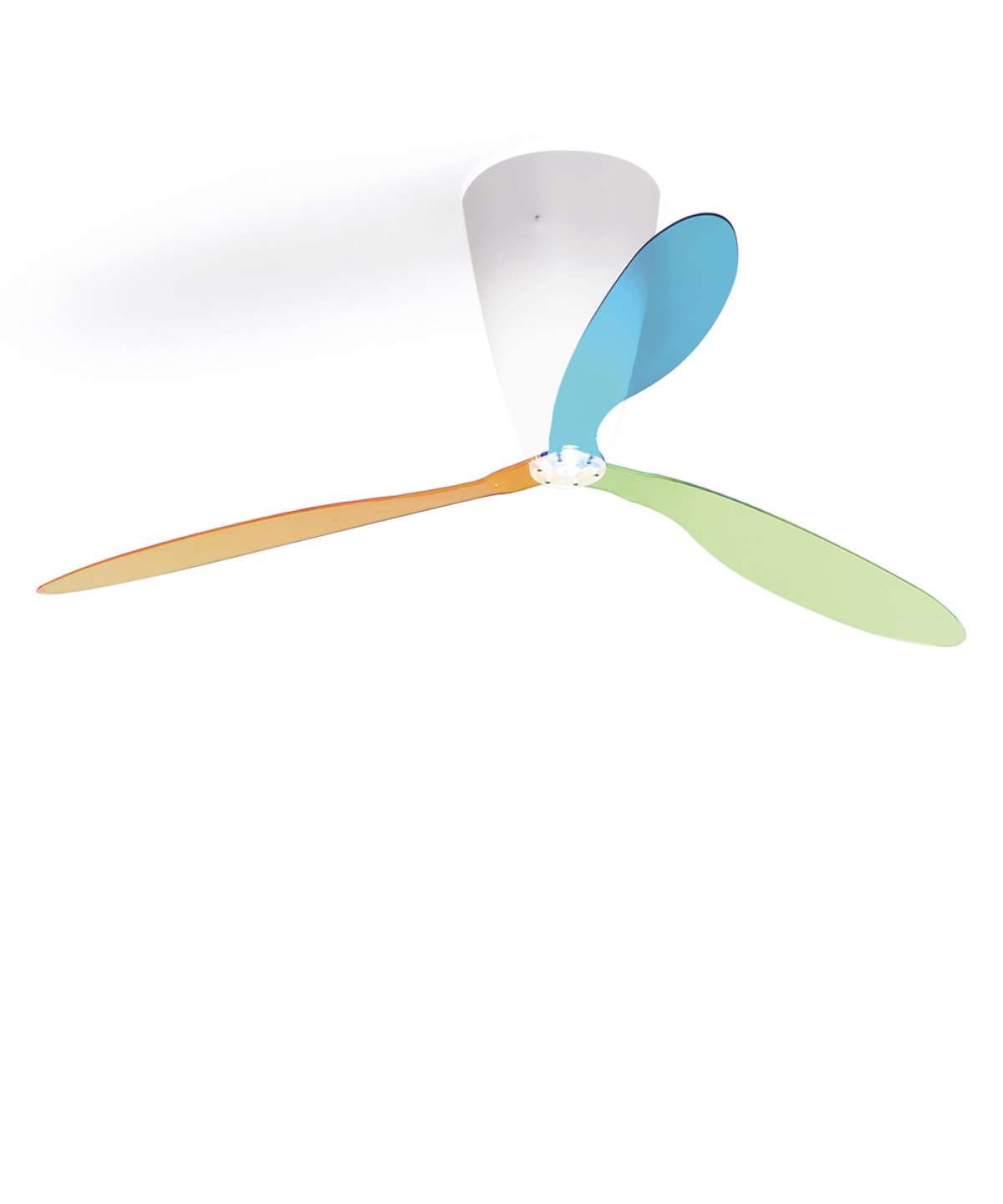 Light in weight, essential in design, Blow moves air at variable speeds with a minimum of noise. The rotation of the colored or transparent methacrylate blades does not interfere with the emission of white light in the room.