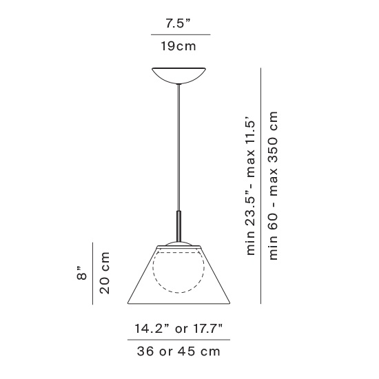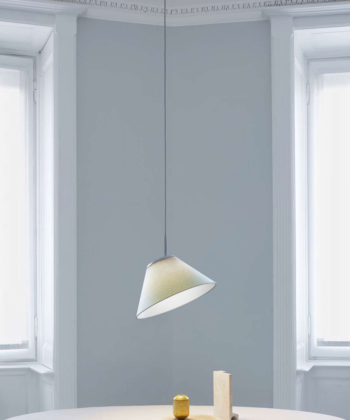 Cappuccina also comes in a suspension version. Two sizes for the shade and three color combinations are available for all the models, giving rise to lamps that are very different from one another. Also in this suspension version, the shade can be freely adjusted in space with a simple gesture.