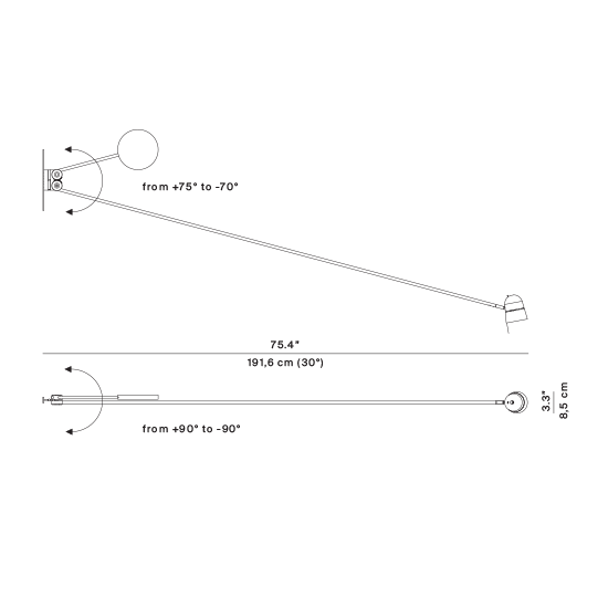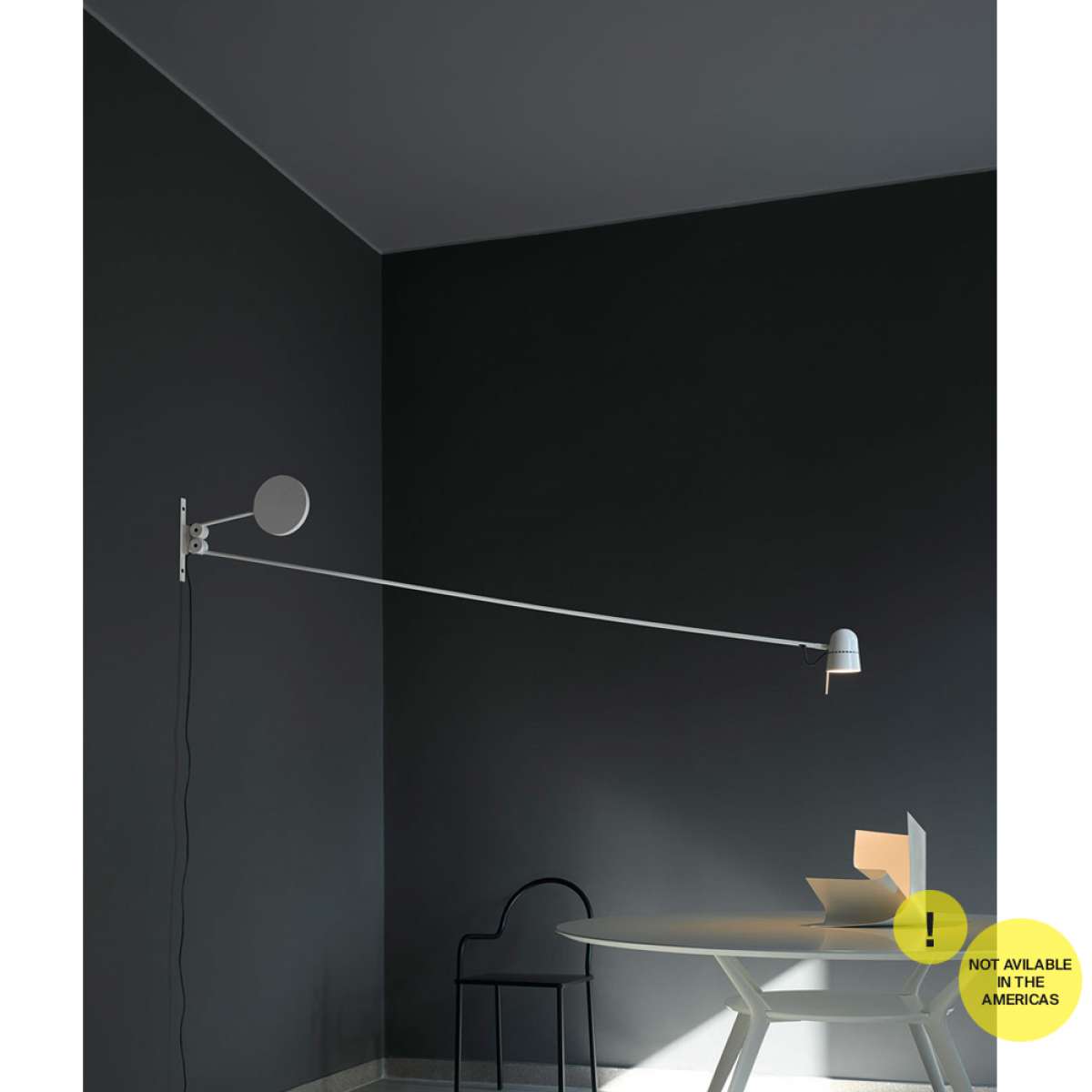 An object that seems to defy the laws of physics. Positioned as desired in space, the essential Counterbalance LED lamp, with its position variation, suggests the dynamic equilibrium of a sculptural mobile. Equipped with a fluid balancing system using gear wheels, the counterweight compensates for the movements of the long arm and ensures stability of the diffuser. The unit is produced in matte black or white painted steel, with an aluminium cap.