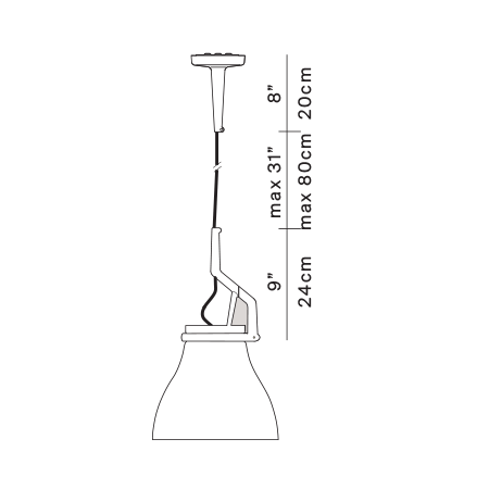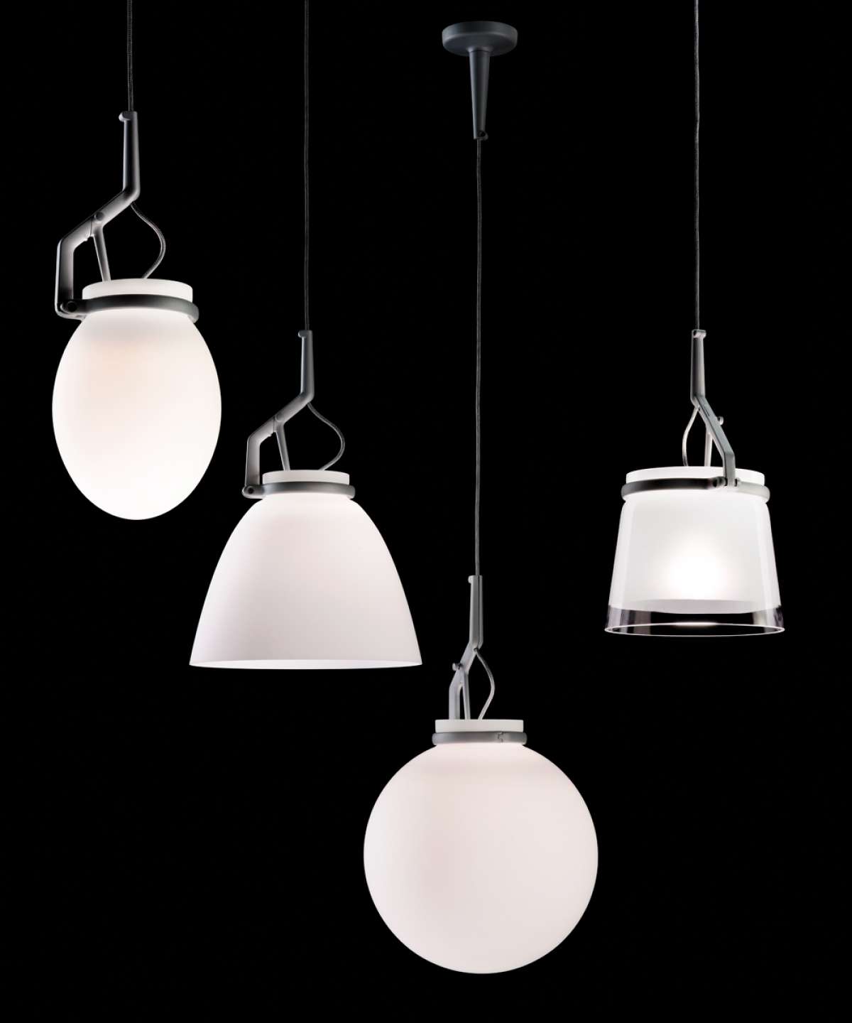 The versatility of a modular system, the elegance of fine craftsmanship. The die-cast aluminium structure securely grips a series of glass shades, made with traditional glassblowing techniques. The load-bearing electrical cable is housed in a steel sheath.