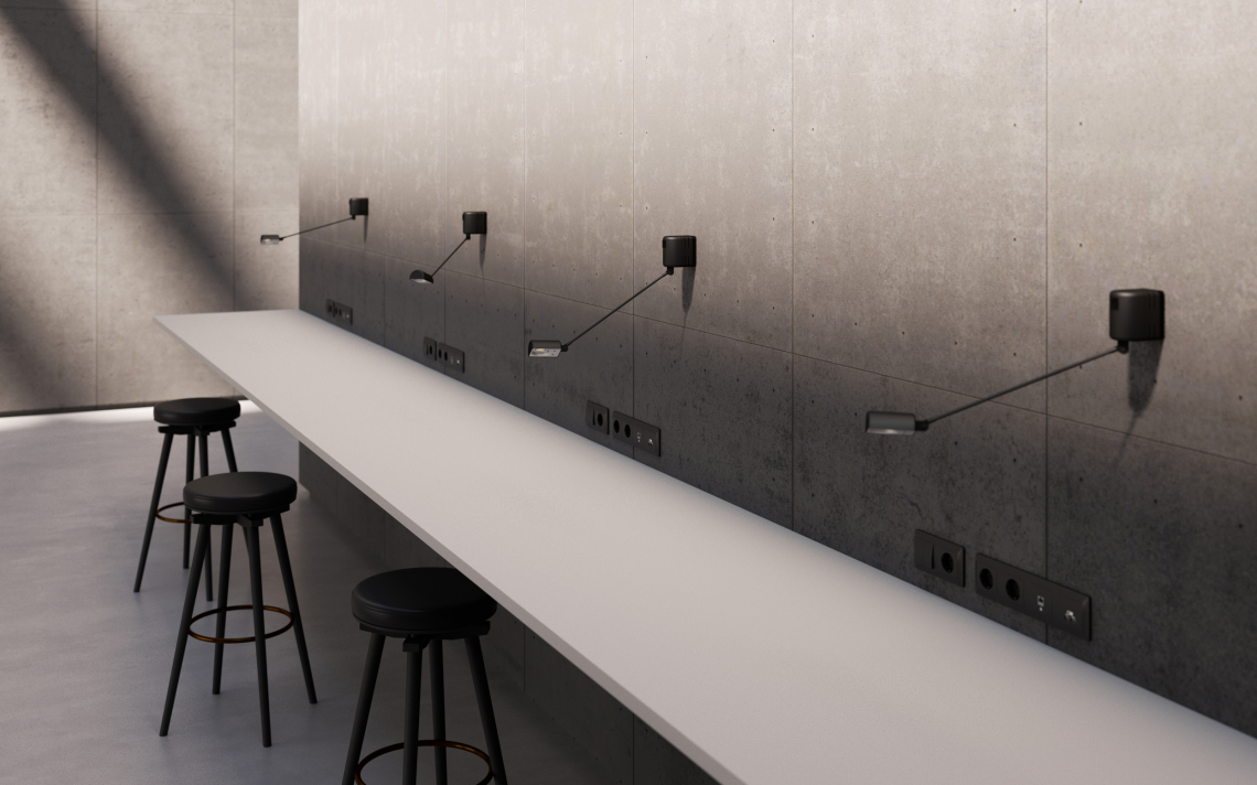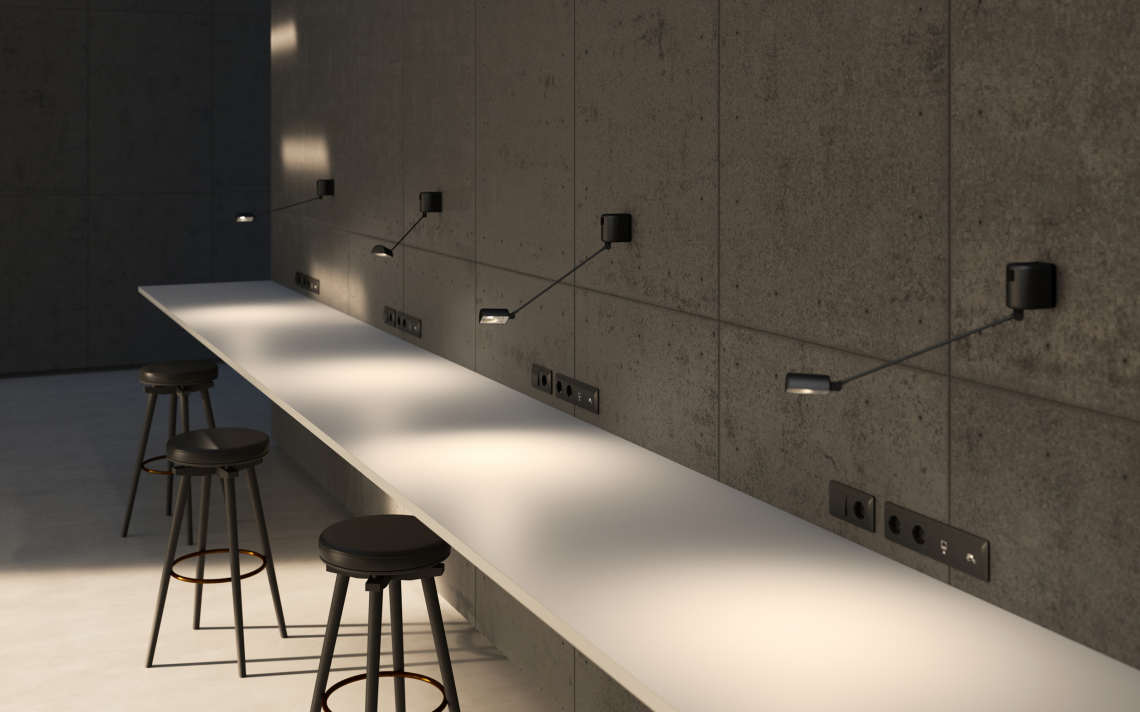 The Daphine Parete comes with a choice of two different arm lengths (20 cm and 35 cm) to meet the needs of designers and architects, as well as private clients, attracted by the contemporary, minimalist character of this version.