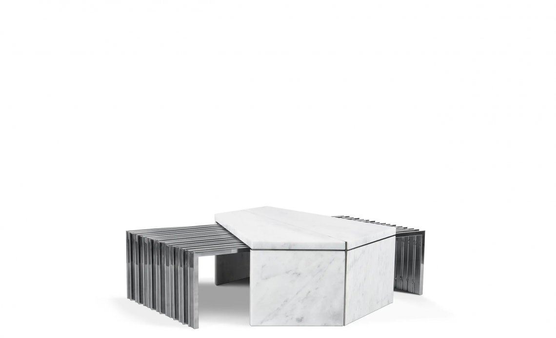 Mayer's collection is the ultimate expression of the luxury lifestyle. Made of the finest materials, stainless steel, and Carrara marble, this center table fits into any setting. From outdoor lounge areas to the indoors, it’s a center table that exhales luxury and style.