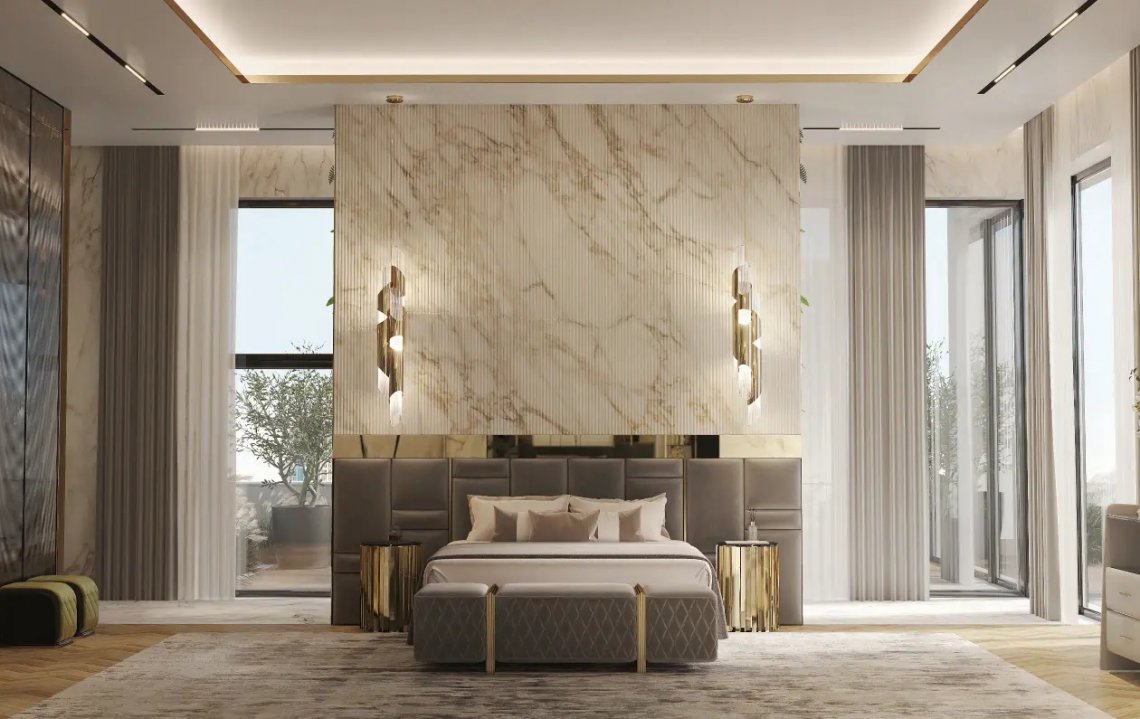 A highly stylish ottoman with a smooth and elegant shape. Made with grey velvet and with polished brass legs, this upholstered beauty will bring an attractive presence to any room, hotel suite, or master bedroom.