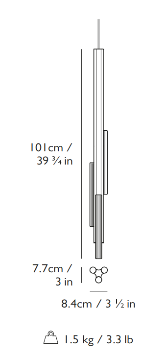 Hail is inspired by the shards of light and shadow often experienced from lancet windows in vast church arches. Available in three standard sizes in a gold or silver brushed finish, Hail has an elongated fluted form fabricated in aluminium with asymmetrically positioned reeded glass lightbulbs placed along its structure. The lights can also be connected to create unique customisable configurations.