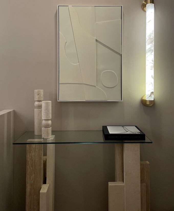 Continuing the exploration of pivots and supports, Fulcrum Light is a slimline pendant of gold, chrome or black cylinders suspended around a central sphere.